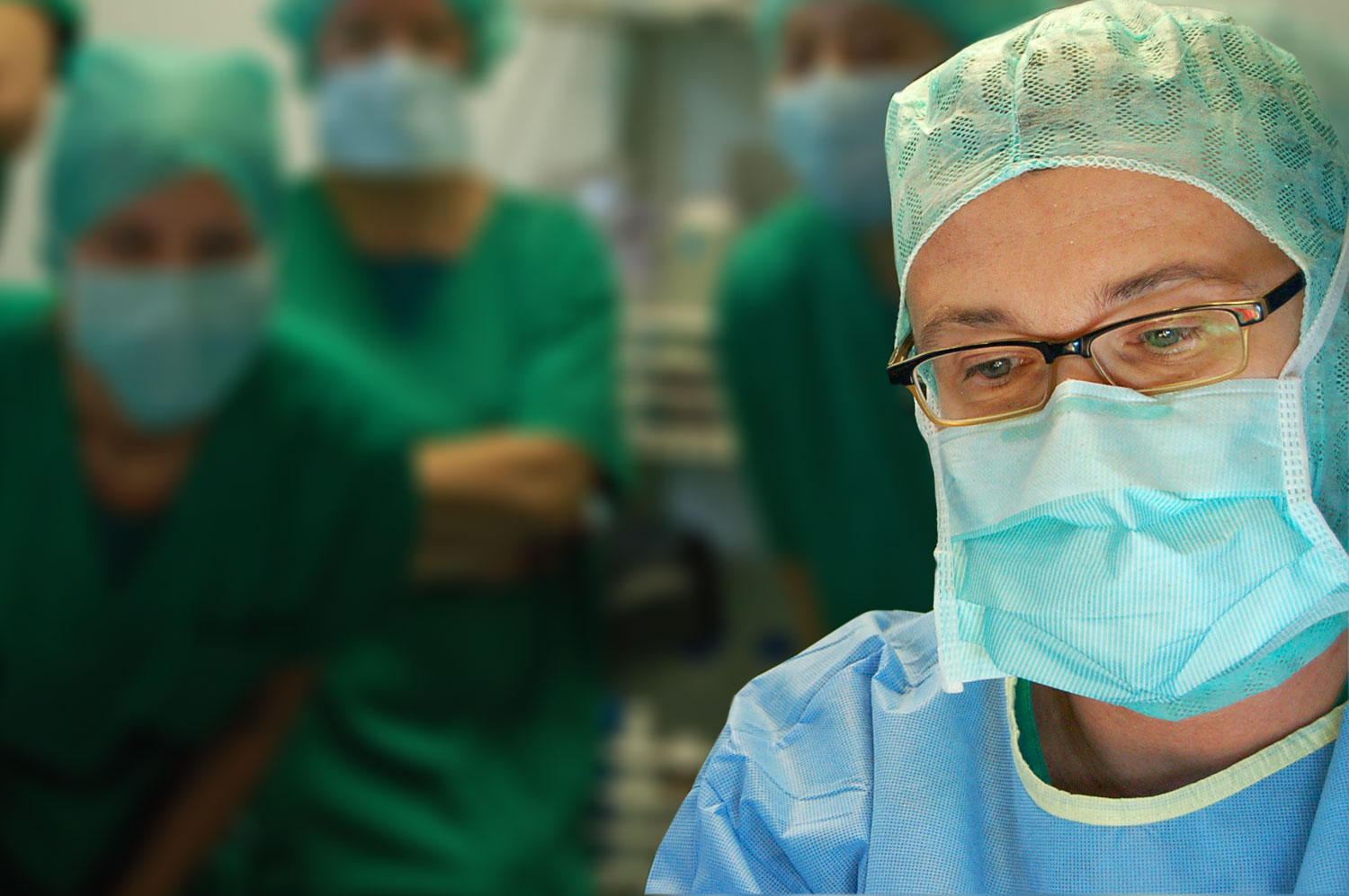 صورة أثناء إحدى العمليات. يقوم البروفسور دي مارتينو بالشرح للطلاب